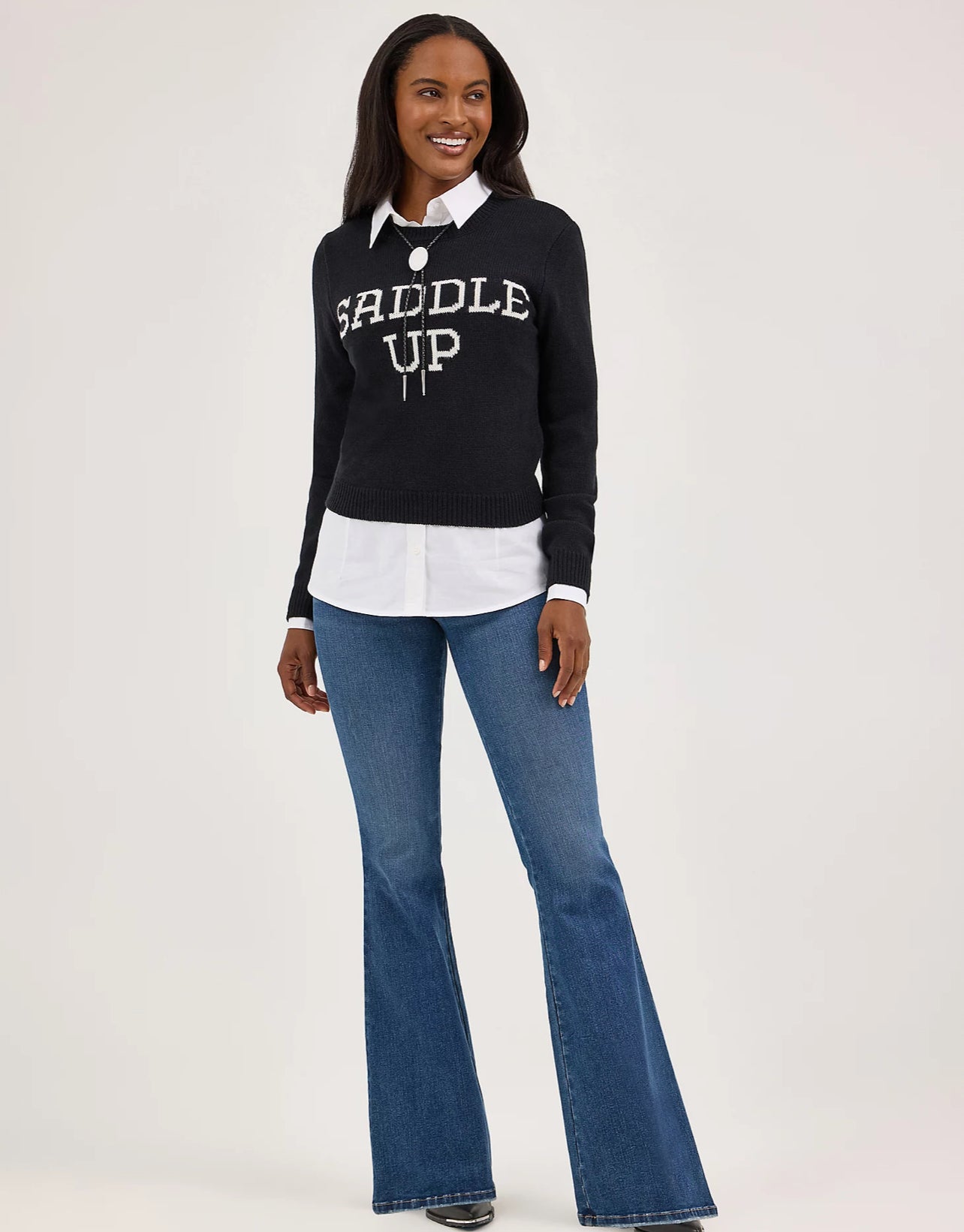 When sweater weather comes, you'll be reaching for the Women's Wrangler Retro® Western Shrunken Sweater again and again. It's crafted for comfort in the season to come, with a slightly shrunken silhouette that's fitted and flattering. It also comes with a cool 'saddle up' phrase emblazoned across the front for a Western feel.